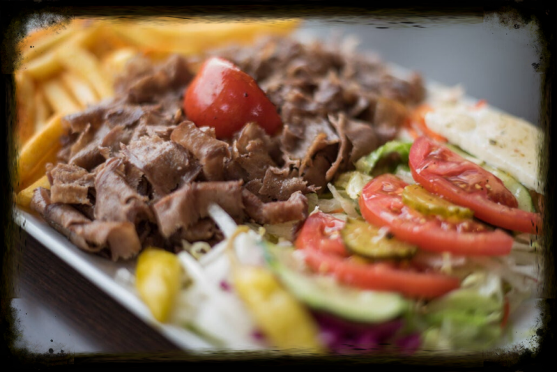 Schotel gyros (shoarma, paprika en ui) €17,00